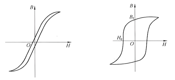 图2 软磁材料(左)和永磁材料(右)的磁滞回线