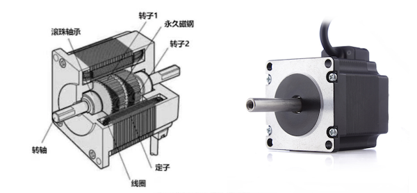 图3 步进电机结构(左)以及金的57HD型号步进电机
