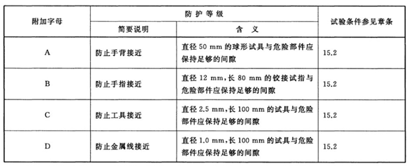图3 附加字母所表示的对危险部件的防护等级[1]