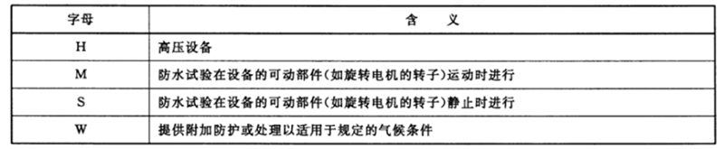 补充字母(可选择)代表了前面防护等级的测试条件(图4)。